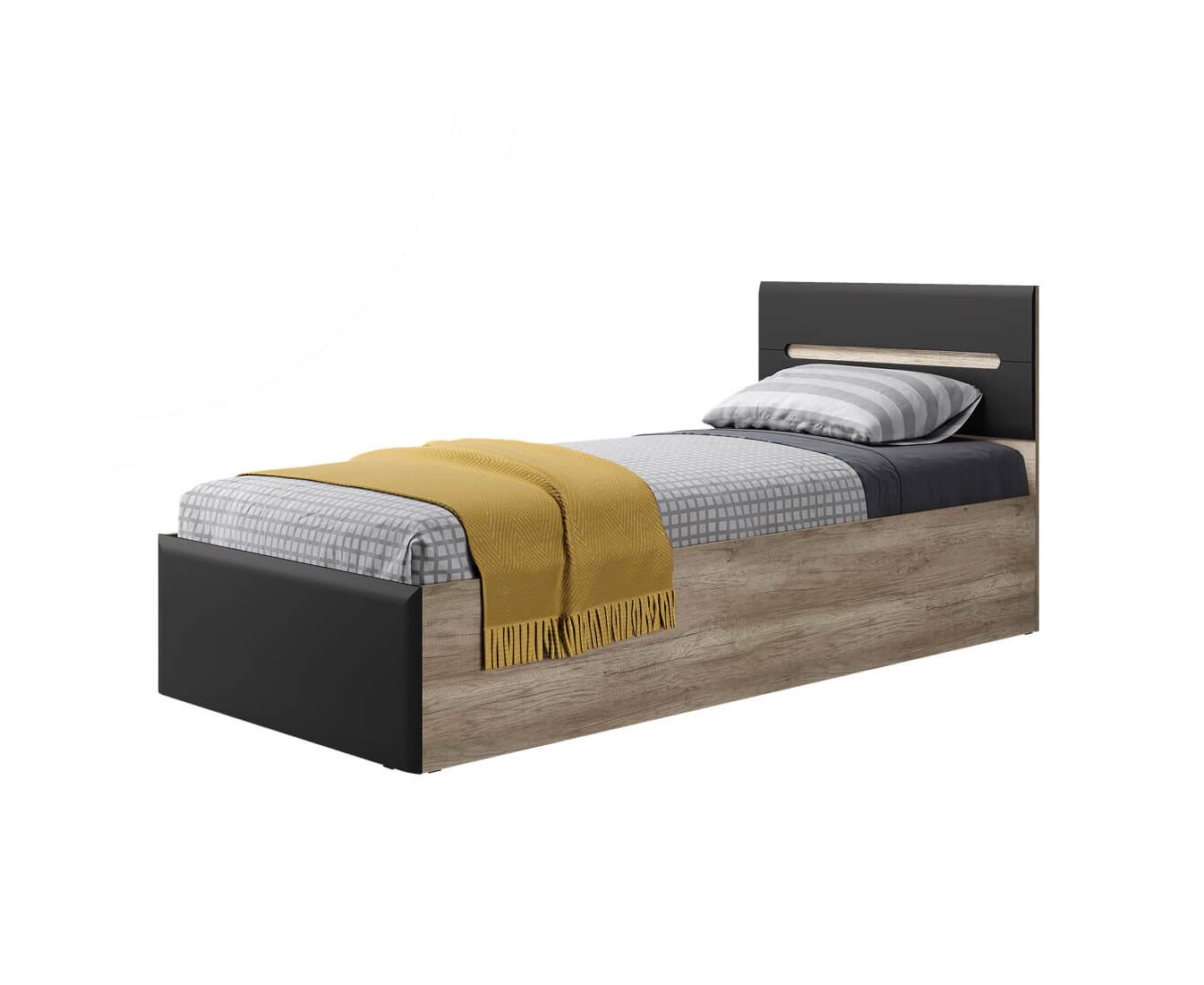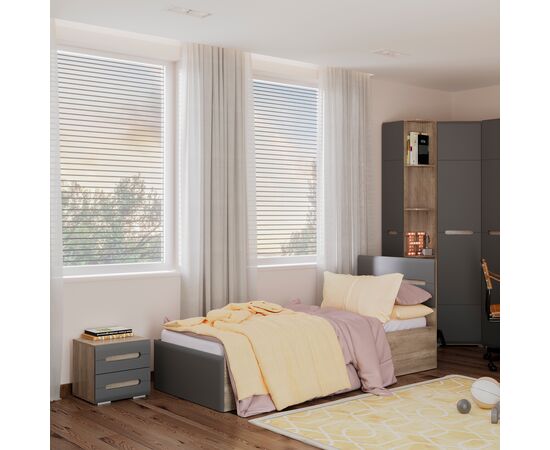 Стильная односпальная кровать "Наоми" – это прекрасный выбор для спальни ребенка или подростка. Выполненная из ЛДСП цвета "дуб каньон" и МДФ серого цвета, она будет отлично смотреться в интерьере любого стиля.