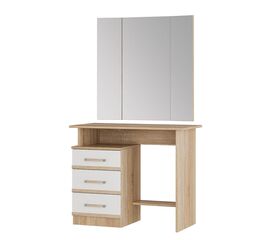 Туалетный стол из коллекции Сакура имеет три выкатных ящика, открытую полку для косметики и удобное зеркало, которое можно регулировать для удобства завершения своего образа. Модульная система Сакура —  аккуратный стильный интерьер, являющийся залогом хорошего впечатления о...
