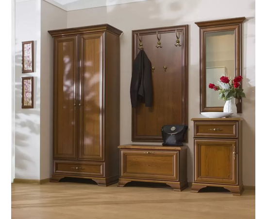 В интерьере тумбу Кентаки каштан можно использовать отдельно, а также в комплекте с зеркалом или пристенной обувницей.