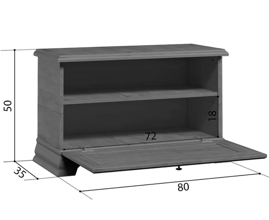 Тумбочка шириной 80 см, высотой 50 см и глубиной 35 см не займет большого пространства и поможет организовать уютный уголок для хранения домашних тапочек и строгих туфель. Заломы и вмятины на обуви не остаются. Строгий вид и лаконичная отделка позволит вписать ее в классический, неоклассический и современный интерьер.