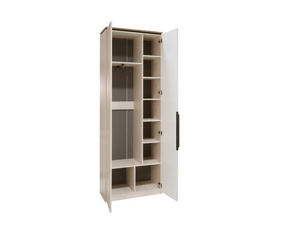 Стильный двухстворчатый шкаф Джулия-2, оборудованный просторными отделениями и выдвижной штангой, станет функциональным и элегантным дополнением к серии мебели «Джулия».