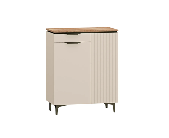 Удобная тумба Джулия-33 оснащена выдвижным ящиком для хранения мелочей и множеством полок для хранения аксессуаров, что делает её максимально функциональной. Черные опоры придают ей современный вид и устойчивость. Идеально подходит для гостиной, спальни или прихожей.