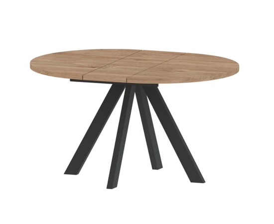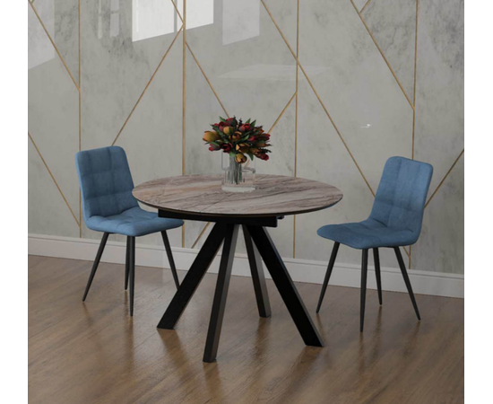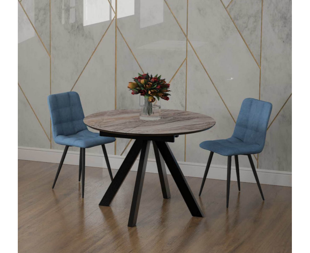 Обеденный стол Сентен-2 раскладной. Столешница выполнена на выбор: из ламината, стекла или керамики. Круглая форма стола позволит легко вписать его в современный интерьер, стол украсит кухню, гостиную или современное кафе, ресторан.